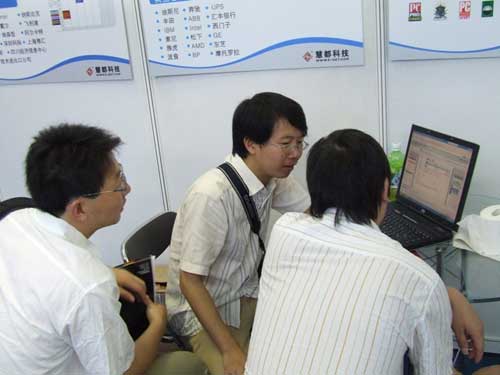 恰逢慧都2008年夏季华北培训,因此在本次软博会现场,也有不少没能赶上报名的相关产业的朋友到慧都的展台与慧都的工作人员共同研究探讨技术问题。慧都的工作人员还耐心的针对来到展位现场的一些朋友提出的需求进行分析,并最终给回用户一个满意的答复。