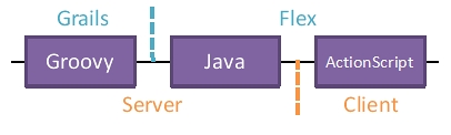 这个问题的关键之处在于两框架相交接的地方。Flex包含Java(web服务器)和ActionScript(客户端)两个组件。因此,Grails和Flex之间的边界就在web服务器,而这个服务器在两个框架内实际上都是Java应用。