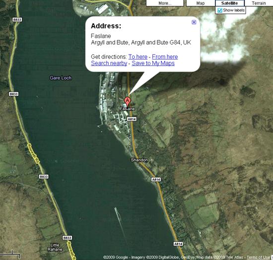 先前该基地的图像应英国政府要求被模糊了,不过 Google Earth和Google地图的最近更新中却无意间将其显示了出来,核潜艇基地和建筑物细节目前都清晰可见,甚至都能看到核潜艇。