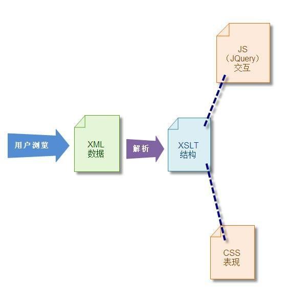 XML+XSLT+CSS的方案将数据、结构、表现进行了分离,而依托JQuery我们又可以轻松地将交互也从中分离出来,这样在客户端就达到了近乎完美的解耦。