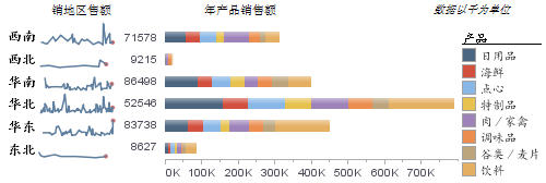 这是一个简单的分析类Dashboard,除了有数据和图像分析外,用户可以通过控件和在图表上的直接操作,来控制数据的显示,计算,过滤,和分组等等。