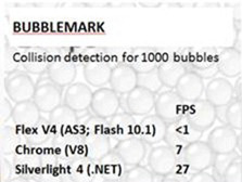 对于一般性的简单应用,我们或许不需要使用到上面提到的进阶功能,此时Silverlight和未来的HTML标准都能符合需求。然而,当您考量到兼顾现状与未来的平台技术,仍有一些其它的技术考量因素,例如执行效率,呈现一致性与时效。