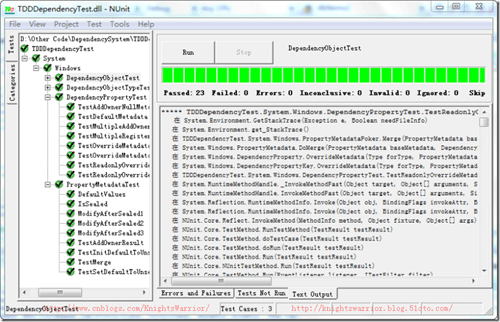由于MONO本身对依赖属性没有那么健全,我们也没有写那么详细的测试代码,中间直接就实现了一些功能,严格地说,所以本文并没有完全遵从正规的测试驱动开发流程。