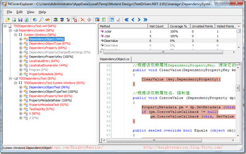 其实通过上面的测试用例,基本就用不着再单独测试了,但鉴于覆盖率比较低的问题,所以最后我们还是来测试一下刚才构建的依赖属性系统: