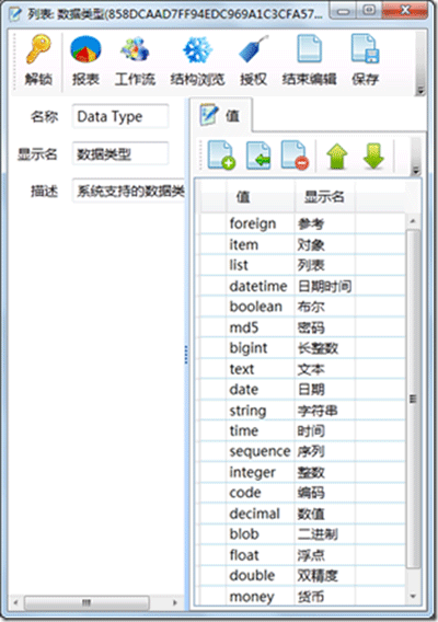 为了便于理解,平台中我们成为列表类型,是一个概念。平台内部可以支持基本数据类型也被定义为枚举类型,如下图: