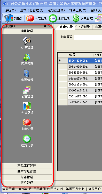 在我的2个版本的送水软件中,都用到了OutLookBar的工具条,使用的界面效果如下所示。