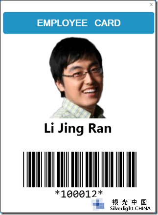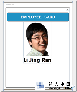 在公司内部员工卡是员工身份唯一的识别工具,同时也是考勤及门禁系统的主要信息来源。首先在WPF 中设计一个简单的员工卡样式,具备员工卡标识、员工相片、员工姓名等。