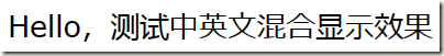 <TextBlock Text="Hello,测试中英文混合显示效果" FontSize="26" FontFamily="宋体"/>