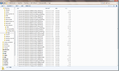 同时,在ArcGIS中对该WFS连接的所有操作,包括连接的创建、修改、访问等操作均以日志的形式存储在同级目录的log目录下,如图: