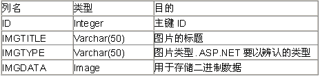 下面给大家一个用于C# Winform的存入、读取程序。其中不同请大家自己比较!(为了方便起见,我将数据库字段简化为二个:imgtitle和imgdata。