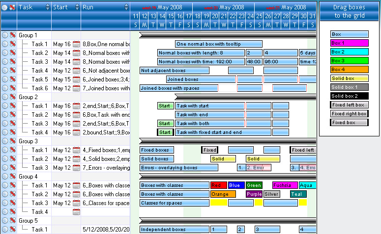 在甘特图中添加可编辑总结GanttSummary属性设置任务。摘要任务可以有也depedencies和日期限制,可以移动到移动整个组。