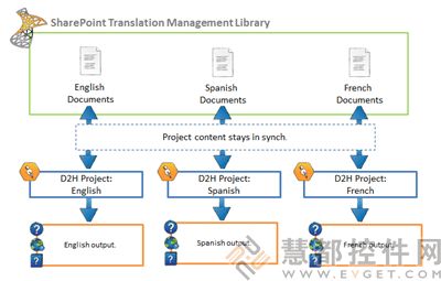 Doc-To-Help 2011的发布有助于管理翻译过程:整合SharePoint翻译管理库。当内容从Doc-To-Help项目上传到翻译管理库中时,Doc-To-Help能为你正在编写的项目创建一份每种语言的项目副本。