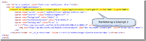 一个Silverlight宿主应用程序的HTML/ASPX代码: