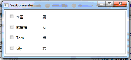 <TextBlock Text="{Binding Path=Sex, Converter={StaticResource Bts}}" Width="200" Margin="5"/>