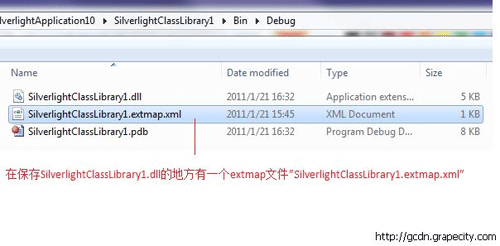 2. 在保存SilverlightClassLibrary1.dll的地方增加一个extmap文件” SilverlightClassLibrary1.extmap.xml”