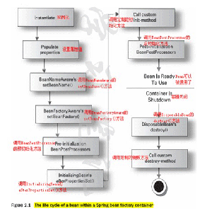 一个Bean从创建到销毁,如果是用BeanFactory来生成,管理Bean的话,会经历几个执行阶段(如图1.1):