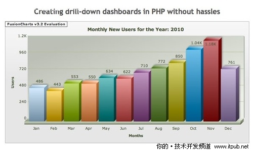 在分析数据时,使用图表的方式是很直接形象的,而假如图表是可以有交互能力的,那么其效果会更加好。在本文中,将探讨如何使用php搭配开源报表库 FusionCharts,去创建交互式的钻取报表。所谓的钻取报表,指的是可以当用户点取报 表中的数据轴的时候,可以再新打开一个新的报表,这样方便在不同的报表之间导航,十分方便。