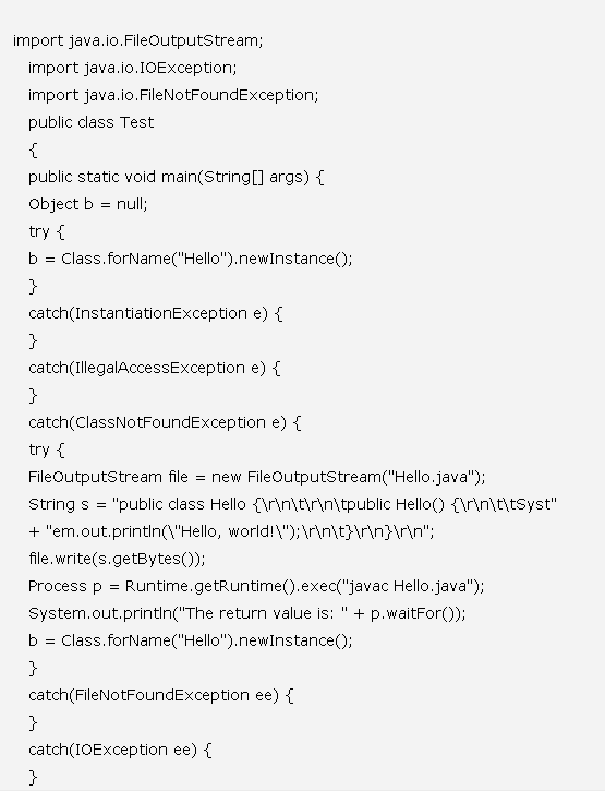 一下是我写的一个比较“恶心”的程序来说明这个问题,大家在使用前先要将自己JDK的bin目录设置到环境变量path中去: