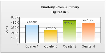 <chart caption='Quarterly Sales Summary' subcaption='Figures in $' xAxis='Quarter' yAxisName='Sales' outCnvBaseFont='Arial' outCnvBaseFontSize='12' outCnvBaseFontColor='333333'>