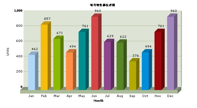 概述:在下载完FusionCharts 以后,我们就可以开始创建我们的第一个flash图表了。我们将要创建一个简单的3D柱状图形,用它来展示每月销售情况摘要。
