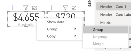 通过分组,您可以在报表页面上将视觉效果、形状、文本框、图像和按钮组合在一起,就像在PowerPoint中一样。将对象组合在一起后,您还可以将它们一起移动并调整大小,这样可以更轻松地处理每页上分层有大量对象的报表。