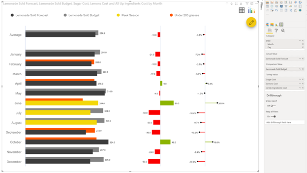 由于此可视化是xViz套件的一部分,所以它具有与多轴图表相同的优秀格式化选项,包括功能强大的条件格式化选项和高级格式化控件。