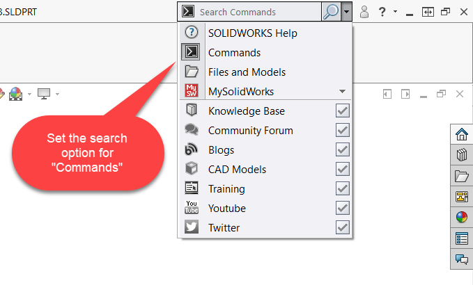 我认为,在Solidworks中建模的最佳方法是一只手放在鼠标上,另一只手放在键盘上,准备按下“ S”键。当您按下“ S”键时,您将启动可自定义的快捷栏,该快捷栏将一组命令带到您的鼠标上。这是您唯一需要知道的热键,因为有了它,您可以快速访问数十个命令。这些快捷栏根据建模环境(草图,零件,装配体或工程图)而有所不同。