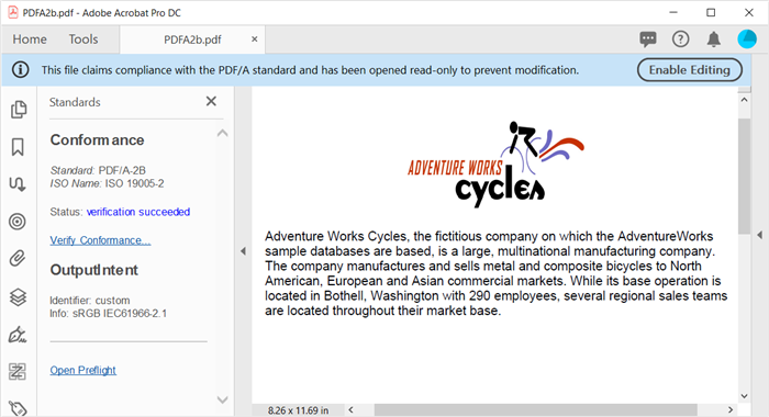 创建符合PDF/A-2b标准的文档。