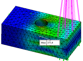 如您所见,分布显示了相同的模式,并且在两种情况下均达到了约320 MPa的最大值。这清楚地证明了螺栓连接器新的分布式连接选件的准确性。最后一点,值得一提的是,螺栓连接器的解决时间约为实心螺栓的解决时间的一半。而且设置非常容易。