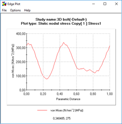 我们可以仔细看看。比较使用实体几何表示的螺栓和采用分布式连接的螺栓连接器的螺栓研究与下图所示圆形边缘上的应力分布: