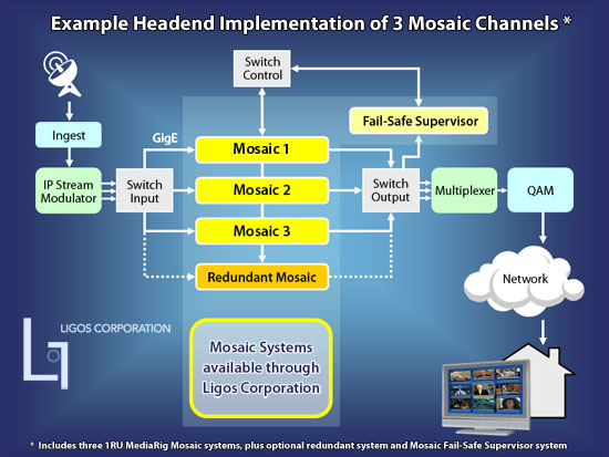 MediaRig Mosaic是一个基于PC的1RU(请求单位)系统,该系统是专门为想寻求最简约、最有效的解决方案的多频道服务运营商提供的,这些解决方案可以向用户提供视频内容丰富的交互式节目向导频道以及其它更多的服务。