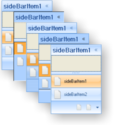 | SideBar A vertical stack of buttons below an integrated panel control, SideBar is similar to Outlook's navigation bar. SideBar supports animated effects and can be rendered in a number of different styles. |