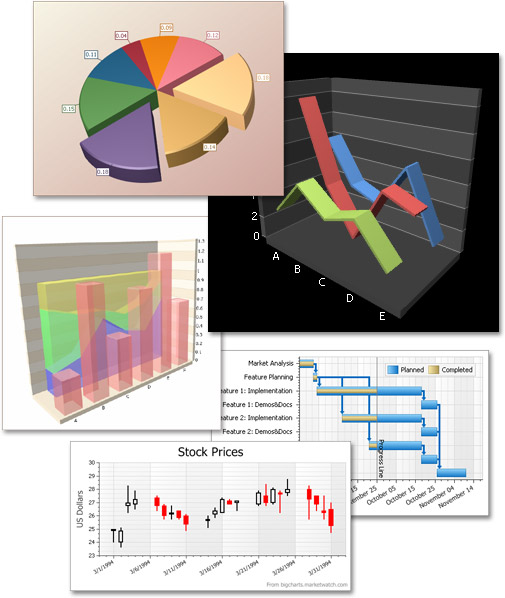 XtraCharts Suite 允许你以任何支持的形式和指定的最适合你事务需要的形式显示数据。通过用户化指定的图表元素外观,你可以为你的终端用户提供经验,而且能最大限度地开拓你整个 .NET 生产线的潜力。