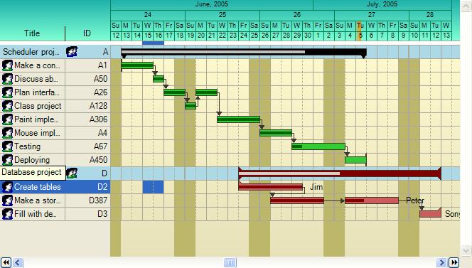 WeeklyCalendar控制组件使您能够轻易地管理一周内的任务。一眼就能清楚地了解一周内的计划。附加列能为多资源规划任务。< /p>