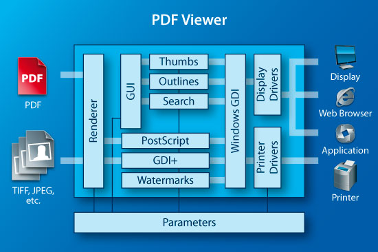 The 3-Heights™ PDF Viewer is an independent, compact, high-quality PDF viewer. It offers a multitude of functions such as display options, navigation, optional printing and support for non-PDF formats such as TIFF, JPEG and other raster image formats. The PDF Viewer is characterized mainly by its ease of integration and handling and high performance.