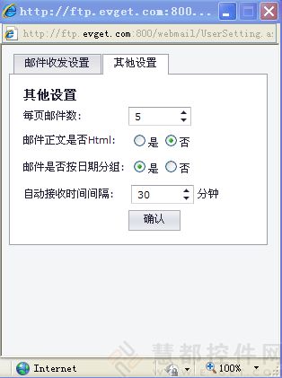 丰富的设置功能,包括每页邮件显示数、自动接收邮件时间、编辑器类型等