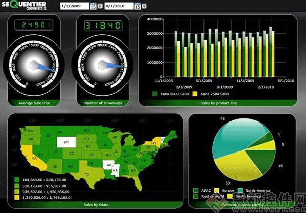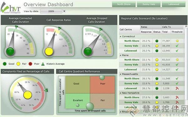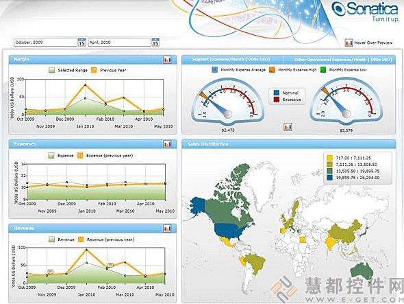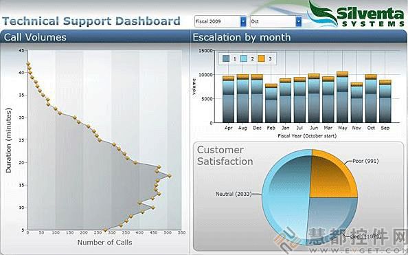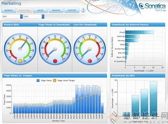 采用堆积柱状图、记分卡及球状图形创建DashBoard