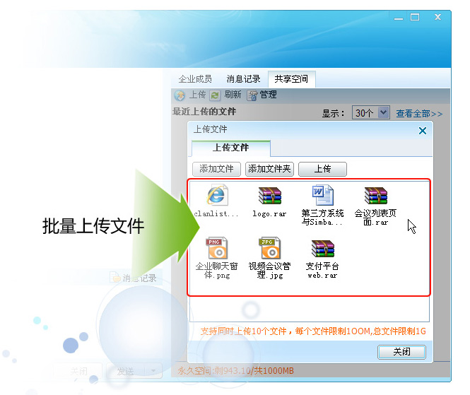 富文本、超大容量即时消息 字体、字号、行间距原格式发送网页、Excel、PPT、Word文档,可一次性发送超过30K容量的即时消息。