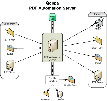 Multiple Sources. PDF Automation Server can receive documents from multiple sources concurrently. Documents from different sources can be handled in the same manner or unique processes can be defined for individual sources.