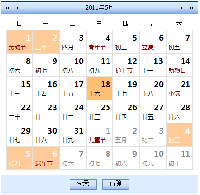 DXperience农历日历插件是慧都打造的一款快捷易用、实用性强的ASP.NET日历插件。它不仅是将DXperience现有的ASPxCalendar日历组件进行了功能优化,而且增加了许多强大的农历日历功能,包括添加了农历日期、农历24节气,农历和公历的节日以及放假信息等内容的显示。另外,您还可对其外观进行自定义设置,使得整个日历组件的内容更加丰富、功能更加强大,从而满足您的各类日历需求。