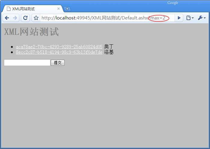 由于此前在ashx中编写了支持Url参数查询的代码,我们可以通过设置max参数来决定显示的最大数据条目数: