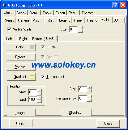 Walls为Series表现的区域,有Left,Right,Bottom,Back之分,其中Left,Right,Bottom都为3D显示时候用的,Back就是Series绘图区域.