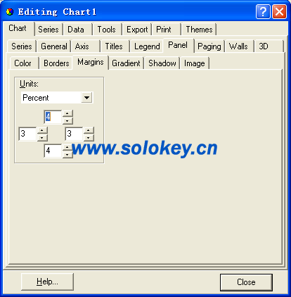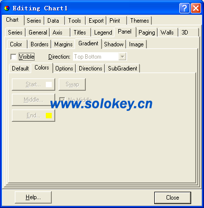 背景的颜色渐变,这个应该是TeeChart的新功能,Title,Tools,Panel,Walls等都可以设置这个属性,这个功能不算复杂,不多介绍了.只要试试就明白了.