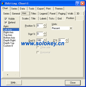 Left Axis,Right Axis,Top Axis,Bottom Axis,Depth Right,Depth Top:和名字的说法一样,都是TeeChart默认创建的Axis,也可以根据需要自行定义Axis.