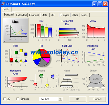 TeeChart提供了很多类型不同的Series,下面是比较常用的.