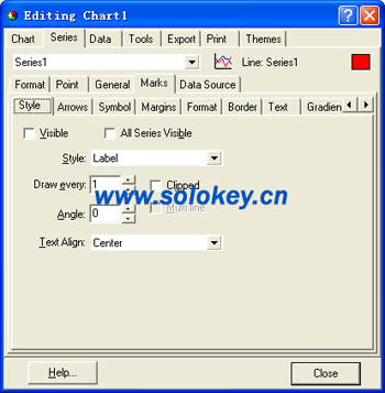 Marks,标记,用于显示添加数据这些函数中的ALabel参数,或者其他的Style.如下: