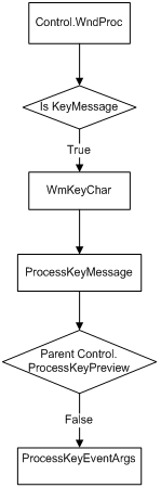 消息到达WnProc之后,会交由ProcessKeyMessage,ProcessKeyPreview以及ProcessKeyEventArgs处理。每一个方法都会返回一个Boolean值,表明控件是否已经处理了该消息。