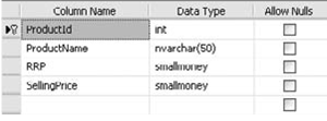5. 然后选择Products表,并且把表拖放到Default.aspx页面上。这样之后,在页面上就自动添加一个GridView和SqlDataSource.