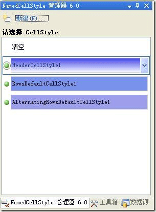 MultiRow模板设计器提供的最后一个工具窗口叫"NamedCellStyle 管理器"(即命名样式管理器),"NamedCellStyle "管理器是管理模板中所有 NamedCellStyle 的窗口。使用此窗口,只需单击 1 次窗口中列出的 NamedCellStyle,便可将此 Style 应用于已选的 Cell。可在此窗口中添加、删除和更改 NamedCellStyle。此窗口与 Visual Studio 2008 中创建 ASP.NET Web 应用程序时所使用的"应用 Style"窗口相似。