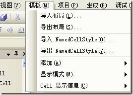 除了工具栏和工具窗口外,MultiRow模板设计器还在VisualStudio中集成了一个菜单,通过该菜单,你可以完成一些基本的操作。比如通过导入/导出布局,你可以把当前的模板保存为xml文件,然后在其他模板设计器中或者通过代码导入,以方便模板的共享。